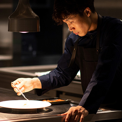 kitchen space『nôl』 ディレクター 野田 達也 氏 1985年福岡県生まれ。半導体エンジニアから料理人へ転向。地元の調理師学校を卒業後、都内フレンチレストランを経て2012年に渡仏。ミシュラン二つ星「Passage 53」の佐藤伸一氏(現:Blanc Paris)の薫陶を受け研鑽を積む。帰国後、食にまつわる様々な見識を広げるなか、ケータリング事業に携わり再渡仏。世界各国のシェフやアーティストとのコラボレーション、イベントのフードオーガナイズを務める。フリーランスの料理人として多様な活動をする傍ら「kitchen space nôl 」のディレクターを務め、同店をミシュラン一つ星へ導く。2024年には、新たにグリーンスター(続可能な活動において業界の最先端を行くレストランが授与される新たな指標)を獲得。日本最大級の若手料理人コンペディションRED U-35にて大会史上初となる三度の準グランプリを受賞。新しい美味しさの創出をテーマに食 × 医療、Art、Techなど越境·共創による価値創造に取り組む。 ![]() |